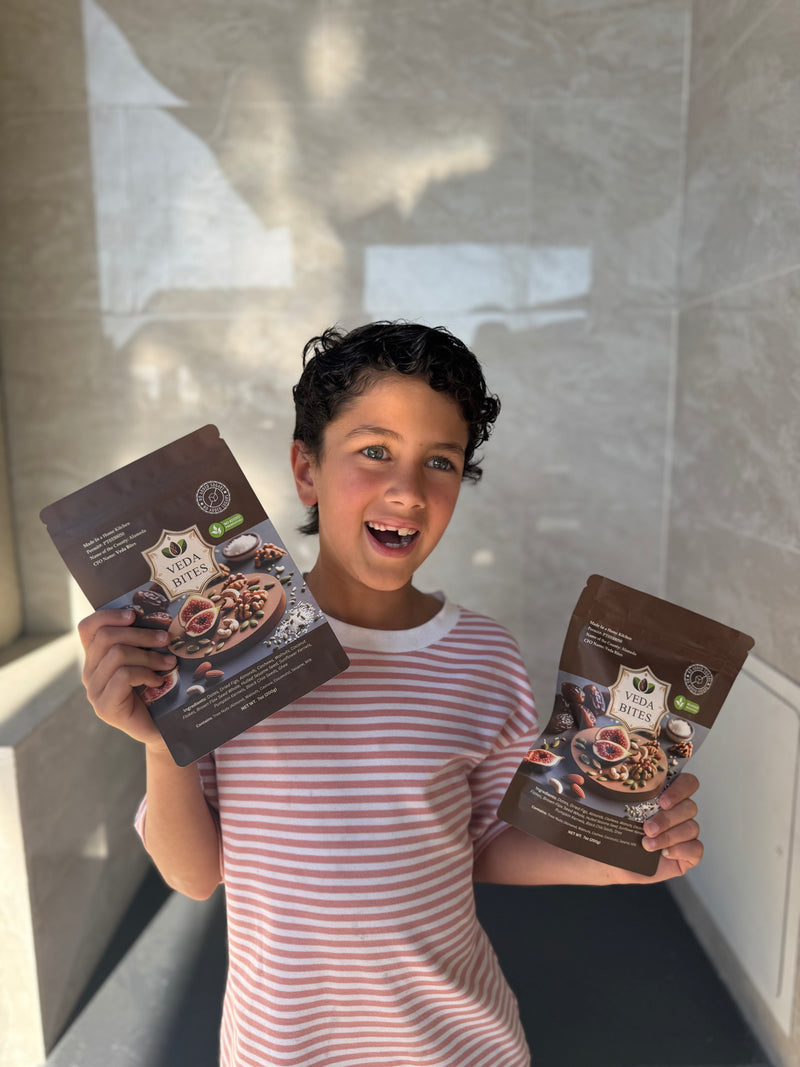 Whether you're packing snacks for the kids, pushing through a hectic day, or supporting healthy aging, Veda Bites deliver natural energy, brain-boosting fats, and gut-friendly fiber in a delicious, wholesome way.