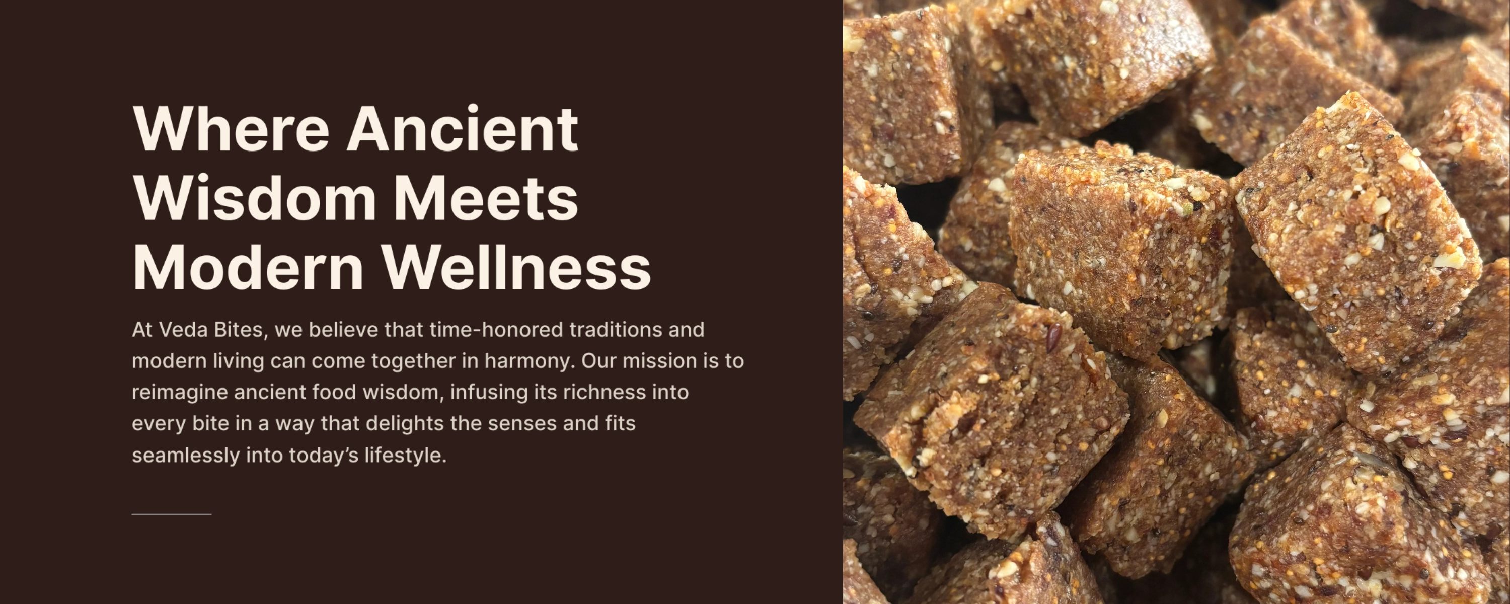 At Veda Bites, we believe what's inside matters most. That's why every bite is crafted with nutrient-rich ingredients like nuts, seeds, dates, figs, and coconut - never any added sugars or preservatives.